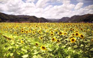 黄金のカーペットを敷き詰めたようなひまわり畑。