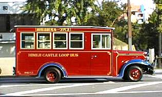 10月3日より、姫路城周辺の文化施設を巡回する姫路城観光ループバスの運行が開始されました。このバスは、レトロ調ボンネットバスで、姫路市観光振興課の企画により、 神姫バスが運行を請け負っています。 運行ルートは、姫路駅前(神姫バスセンター)から出発、 途中「姫路城大手門前」、「警察前」、「美術館前」、「博物館前」、「清水橋(文学館前)」、 「好古園前」と姫路城の外周を巡回し姫路駅前に戻るコースで、このループバスを利用すれば、姫路城周辺の 文化施設へも効率よく巡ることができ、姫路観光に最適なバスになります。 |