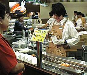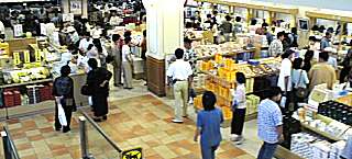 大勢の観光客が家族・知人へのお土産を買うために品定め。 銘菓・地酒・水産加工品など、いろいろな物が売られていました。 | |