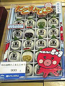明石海峡「たこまんじゅう」 明石海峡と言えば「タコ」。 やっぱり、タコをウリにした銘菓はあった(笑) タコのキャラクターが可愛いですね〜。 15個入り 600円 24個入り 900円 (いずれも税別) | |